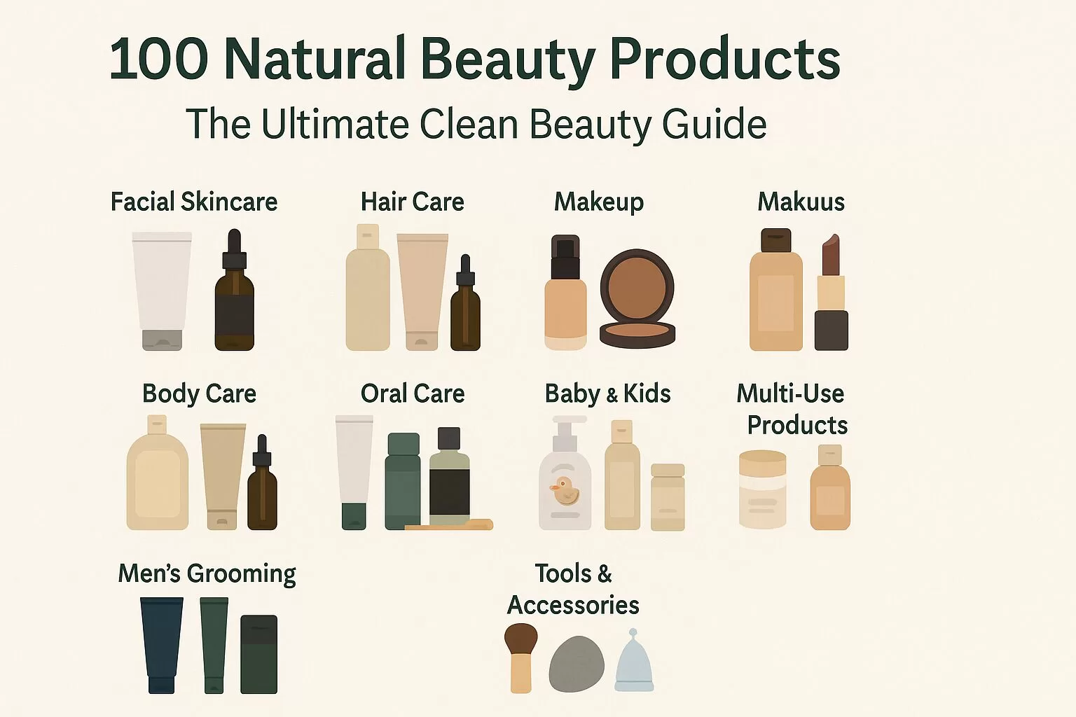 To make this guide practical, we’ve categorized the 100 natural beauty products into essential beauty areas: