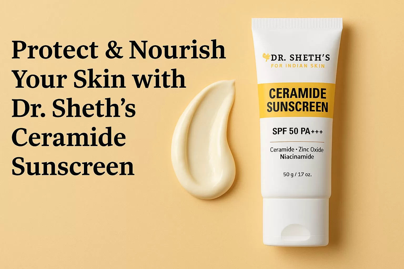 Dr. Sheth’s Ceramide Sunscreen (In-Vivo Tested)50+ PA+++CreamSkin barrier supportStrengthens, leaves healthy glow