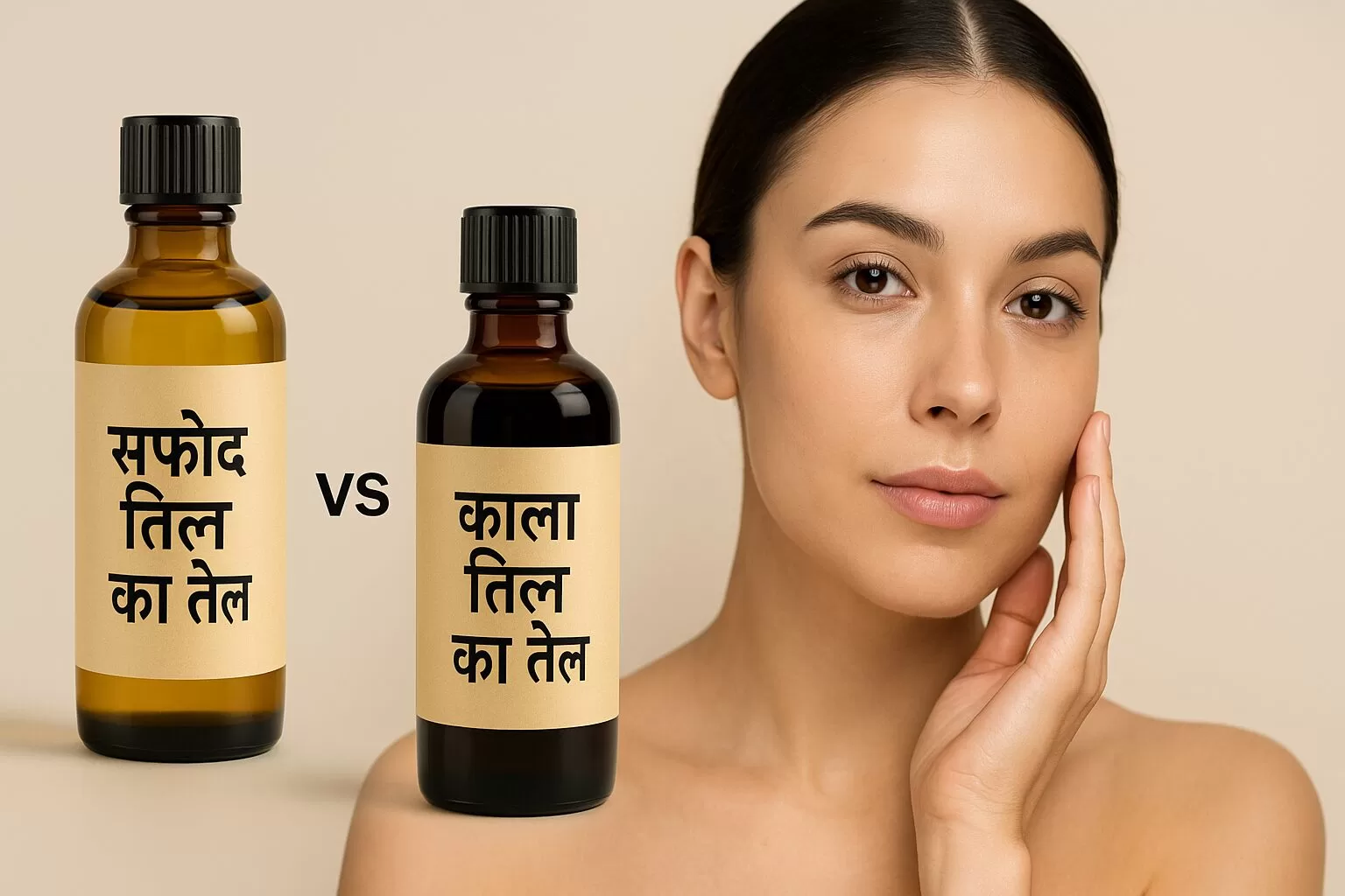 तिल का तेल न केवल रसोई में बल्कि आयुर्वेदिक स्किन केयर में भी सदियों से इस्तेमाल होता आ रहा है। पर क्या आप जानते हैं कि सफेद तिल और काले तिल से निकाले गए तेलों में काफी अंतर होता है? दोनों के लाभ अलग-अलग हैं और इनका असर आपकी त्वचा पर भी अलग होता है। आइए जानें – सफेद तिल का तेल और काला तिल का तेल (saphed til ka tel vs kaala til ka tel) में कौन सा स्किन केयर के लिए ज्यादा फायदेमंद है।