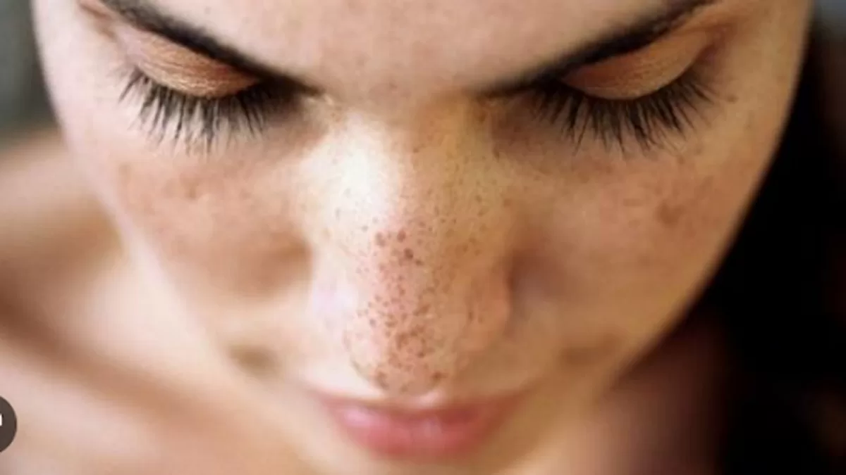 - Freckle-like specks that are flat, light brown, and scattered across the nose and cheeks