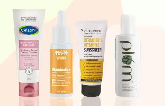 Serums with Vitamin C, Hyaluronic Acid, and Niacinamide like Minimalist Vitamin C Serum and Plum 15% Vitamin C Serum are great for glowing skin.